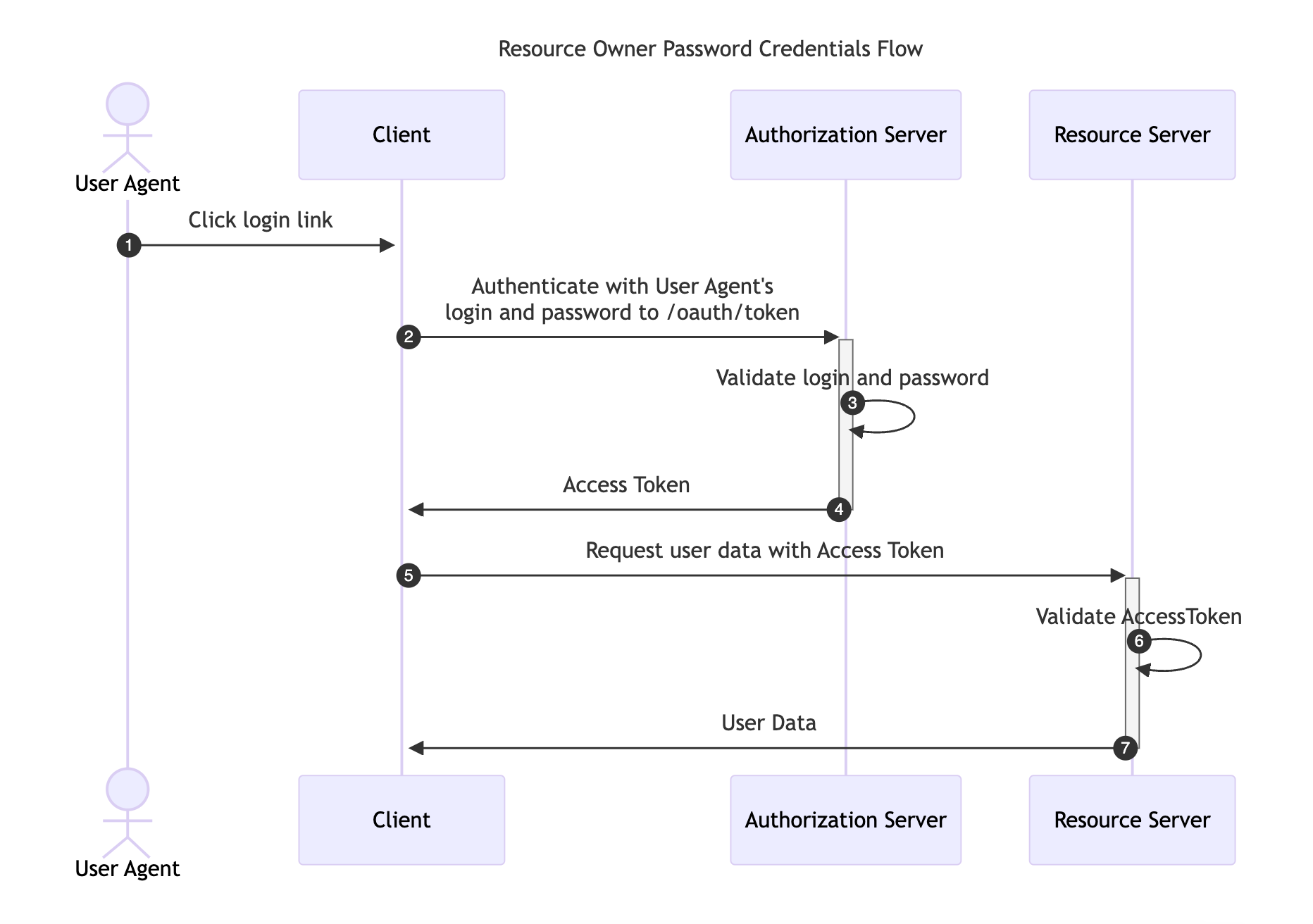 Instead of redirecting the Resource Owner to the Authorization Server, the user credentials are sent to the Client application, which then forwards them to the Authorization Server.