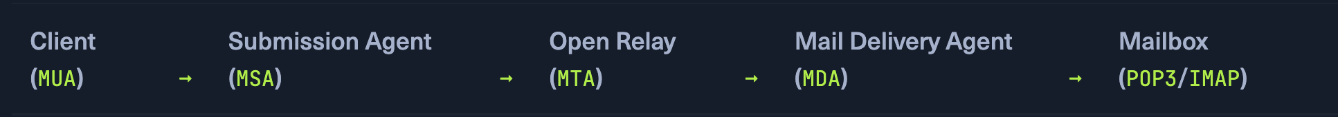 MTA: Mail Transfer Agent: sending and receiving emails SERVER
