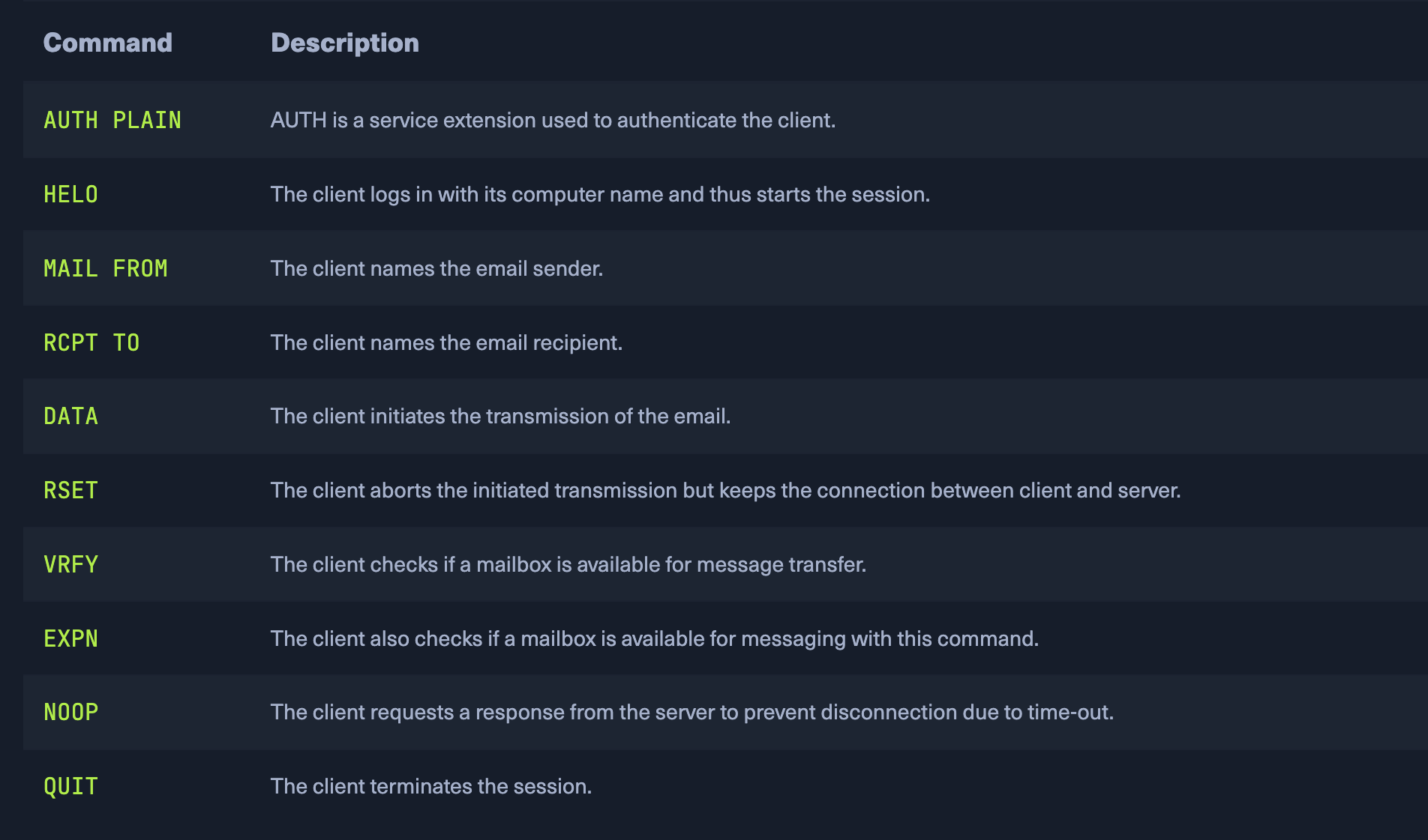 - newer servers use port 587 : used for mails from authenticated users and servers (using STARTTLS)